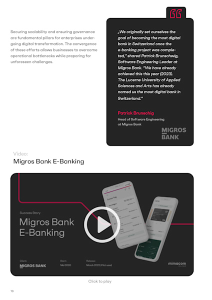 Desde fabricantes alemanes y bancos suizos, hasta grandes del retail en España y organizaciones globales del sector salud, en Mimacom ayudamos a nuestros clientes a Stay Ahead in a fast-changing digital world.